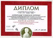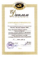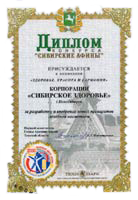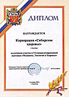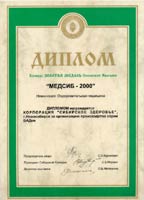 Диплом «Сибирской ярмарки», выставка «Медсиб-2000» в номинации «Оздоровительная медицина» за организацию производства серии БАДов