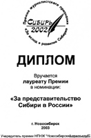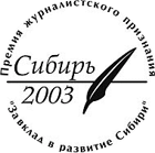 Премия журналистского признания «За вклад в развитие Сибири» в номинации «За представительство Сибири в России!