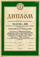 Большая золотая медаль Сибирской Ярмарки (выставка «Медсиб-2003») за комплексную програму лимфосанации и детоксикации в гинекологии