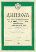 Серебряная медаль Сибирской Ярмарки (выставка «Медовый спас-2008») за серию «Целебные меда».