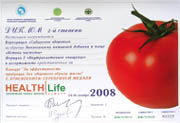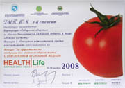 Диплом 2-й степени международной выставки «HEALTH LIFE» - здоровый образ жизни» за образцы Биологически активной добавки к пище «Истоки чистоты» Формула-3 «Антиоксидантная защита клеток»